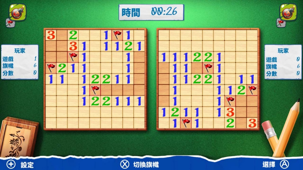 游戏的目的是清理一个长方形的木板,上面覆盖着面朝下的纸牌,但有限制的移动次数。翻出任意两张牌。如果它们相匹配,则将其从板上取下;如果不匹配,则将它们放回。 MINES(踩地雷)
