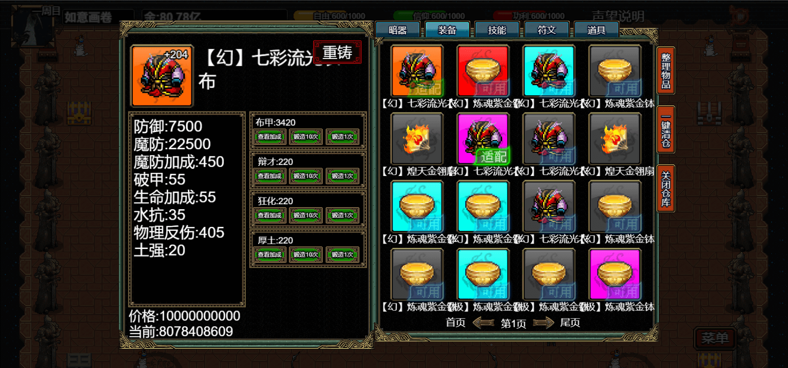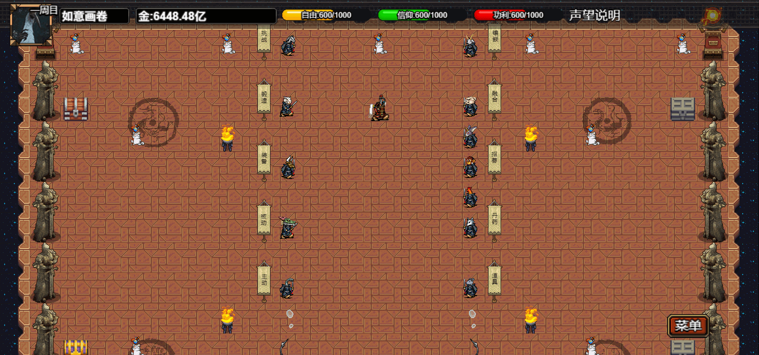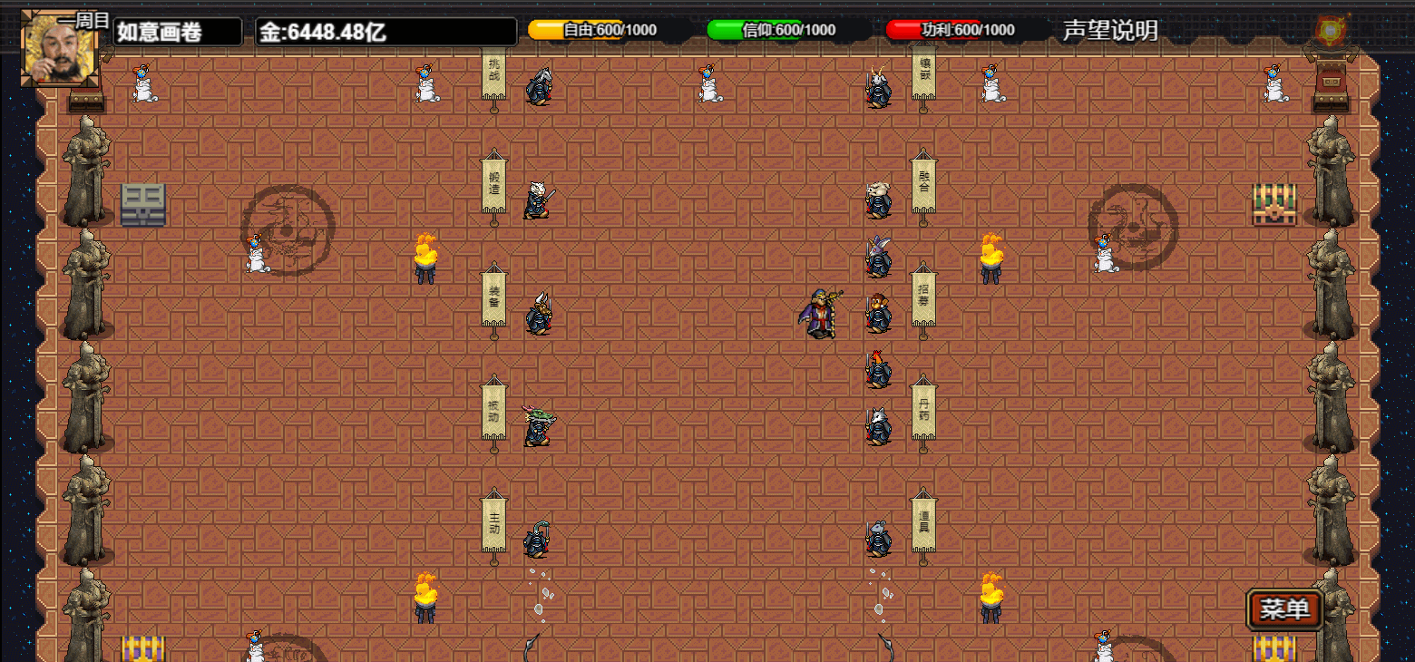 进入游戏界面为主基地页面此页面中可跟npc实现各种游戏内的功能其中镶嵌页面是给装备增加一个修为词条如下图所示(注:有该词条的装备需要对应的修为足够才能穿上)(符文可以由战胜对面的挑战npc获得,三级地图的宝箱中也可能开出) 挑战副本通过解锁图鉴可以开启(使用系统给的阵容战斗战斗胜利可获得对应的符文) 锻造页面可以锻造仓库中的装备,如已经穿在身上需要脱下来。(锻造后穿着的要求会提高,请注意角色的修为是否能够达到穿戴的要求)