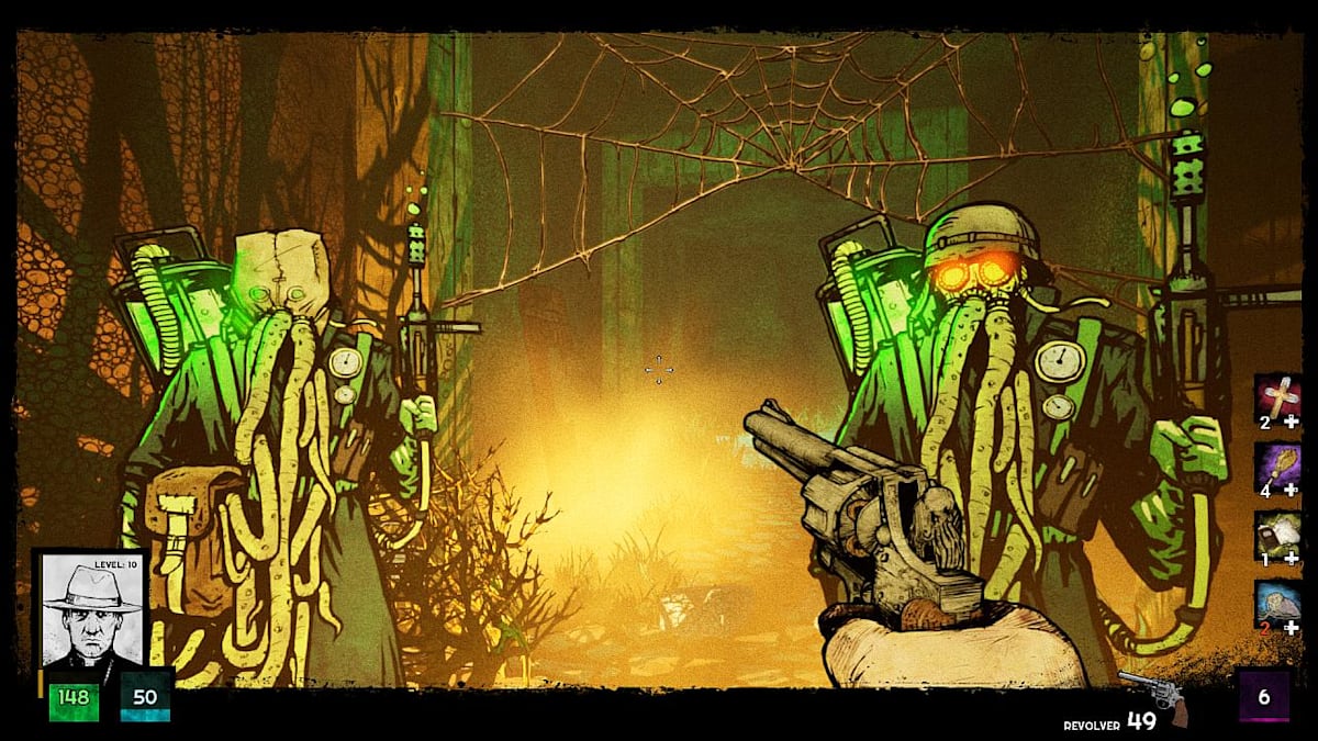 手绘图案旨在保持与众不同的外观;游戏中的任何截图都可能是一本新漫画书的一部分! 洛夫克拉夫特式的氛围