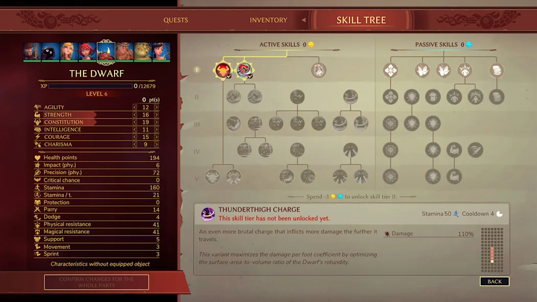- 团队的每个成员都有自己的技能树来升级他们的能力和装备。